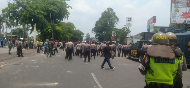 Mereka hendak ke Jakarta menggunakan sepeda motor, bus dan dipimpin mobil komando. Aparat Gabungan TNI-Polri dari Kec. Batu Ceper berusaha menyekat para pendemo massa buruh agar tak bisa menuju Jakarta untuk melakukan aksi protes